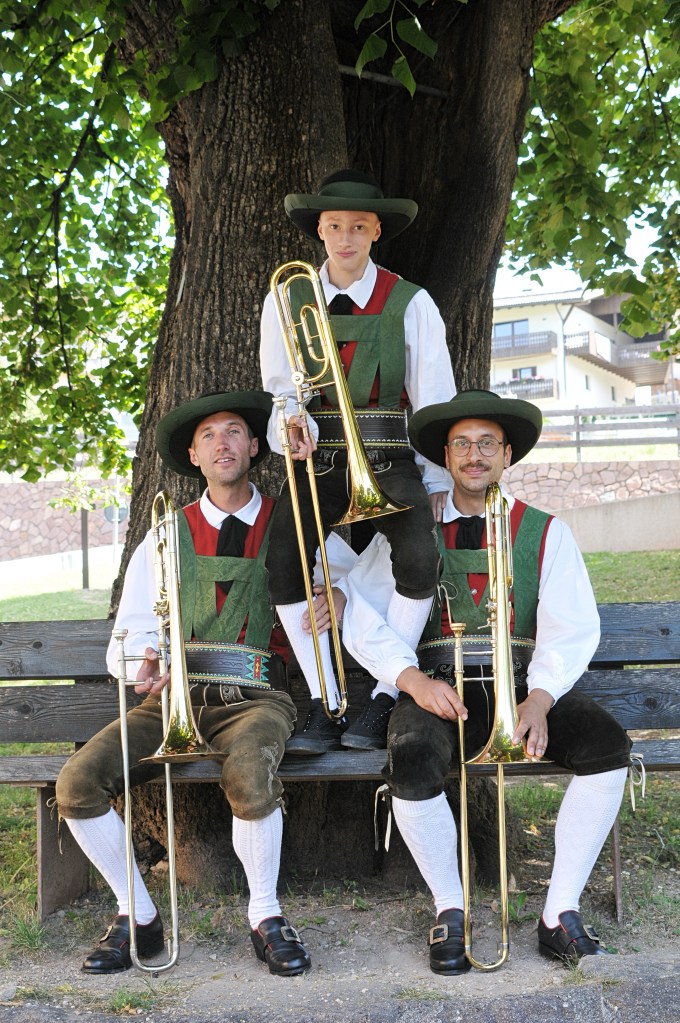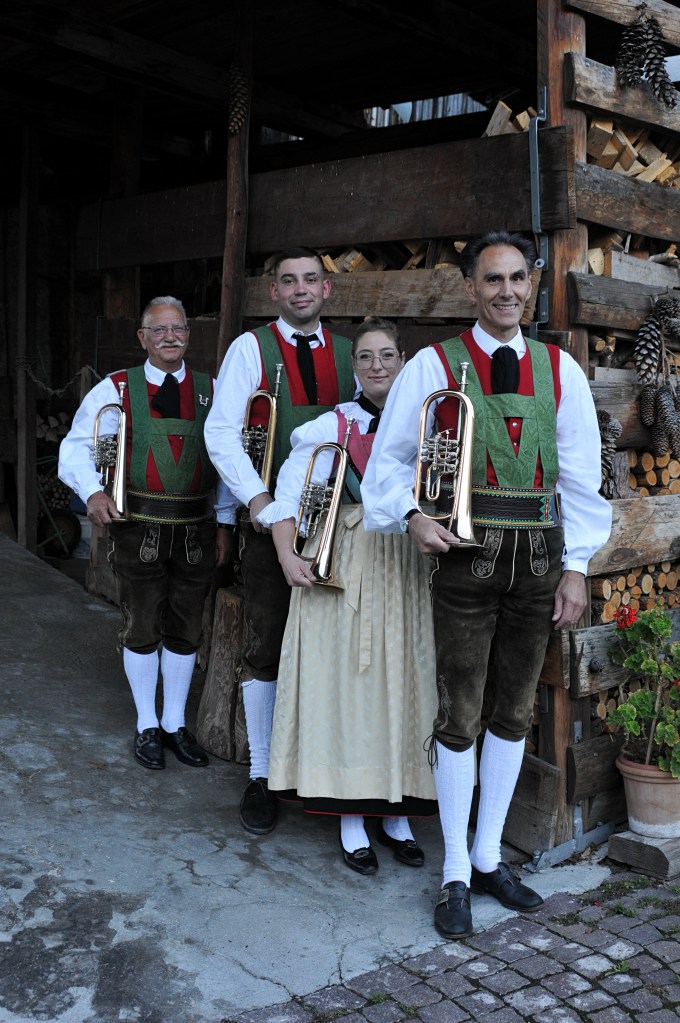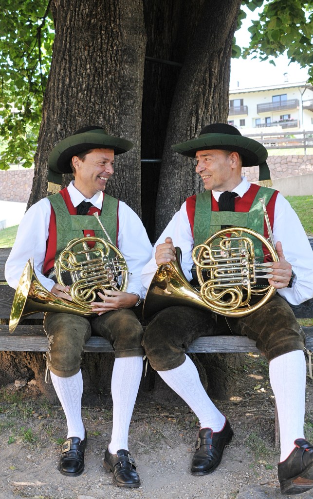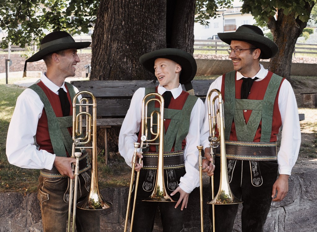 Spritzige Gegenmelodien, stimmige Akzente und wundervolle Harmonien: Dafür sorgen unsere Tenorhörner. Drei in Trudner Tracht, eine aus dem benachbarten Molina di Fiemme – denn Musik überwindet jede (Regionen-)Grenze!