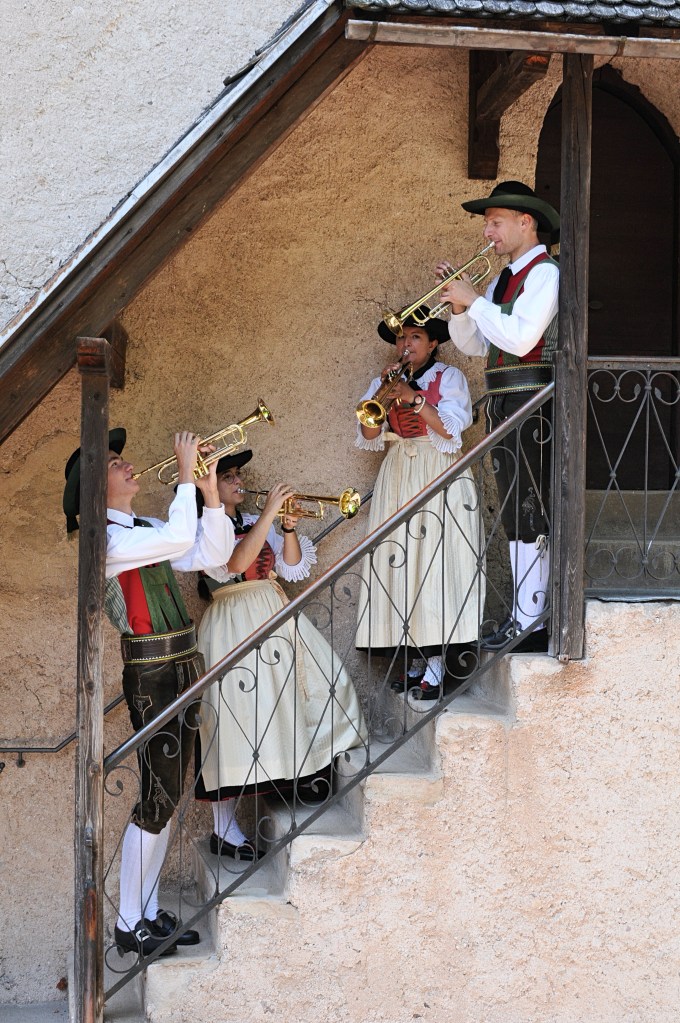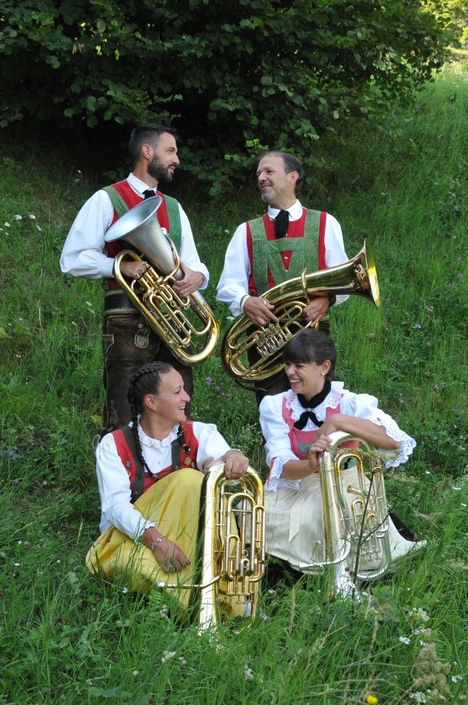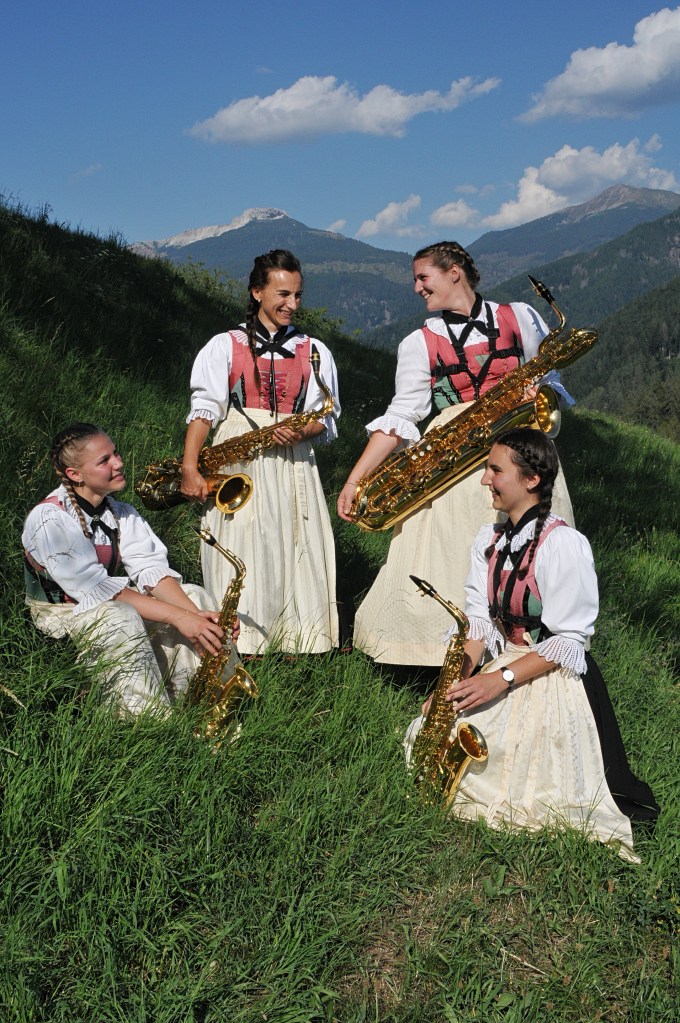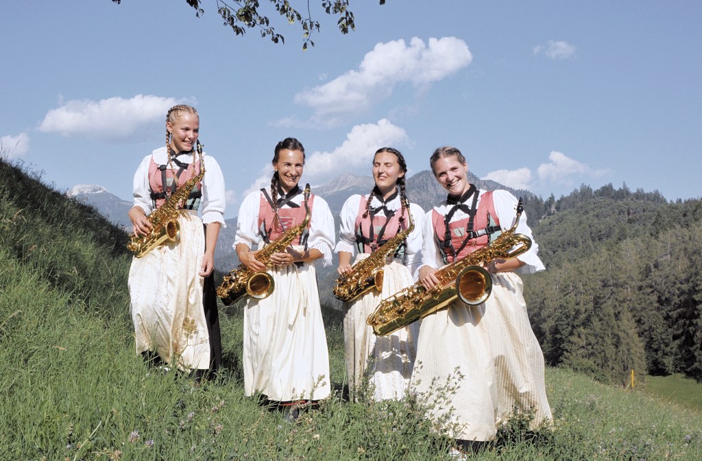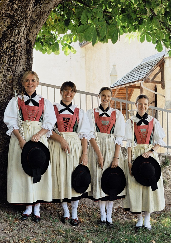 Spritzige Gegenmelodien, stimmige Akzente und wundervolle Harmonien: Dafür sorgen unsere Tenorhörner. Drei in Trudner Tracht, eine aus dem benachbarten Molina di Fiemme – denn Musik überwindet jede (Regionen-)Grenze!